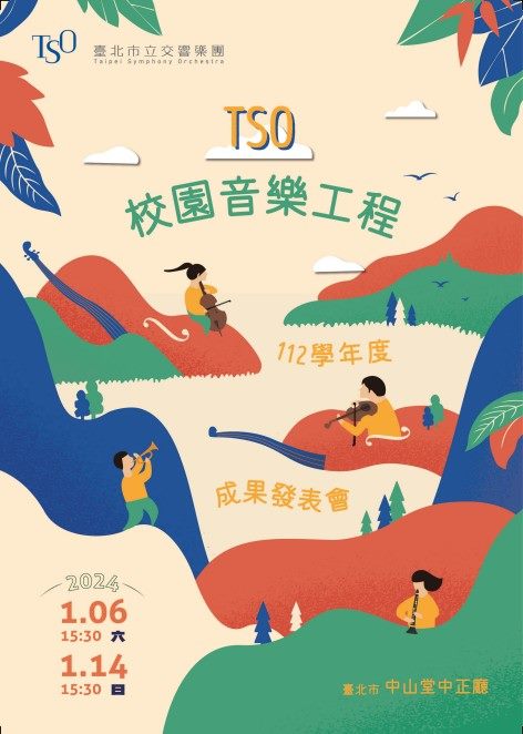 臺北市立交響樂團長期致力於音樂專業演奏與教育推廣,自105學年度起,陸續試辦「國小學童音樂劇」及「樂器學習圓夢計畫」,並於107學年度正式整合發展為「校園音樂工程」,作為TSO深耕校園、實踐文化平權的重要教育計畫。